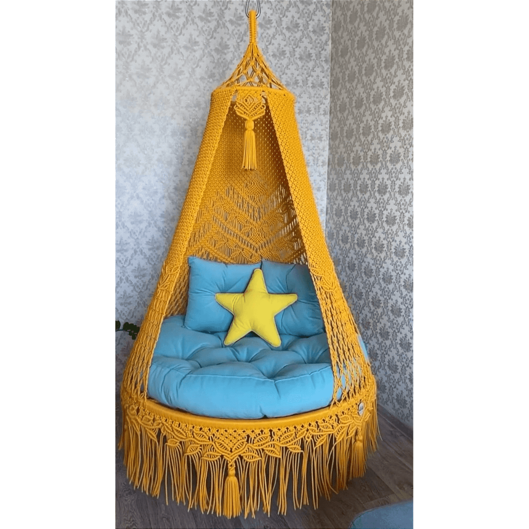 The hanging crochet chair is made in the macrame technique from a hammock 100% cotton macrame cord. This macrame swing will be great addition for your room.
