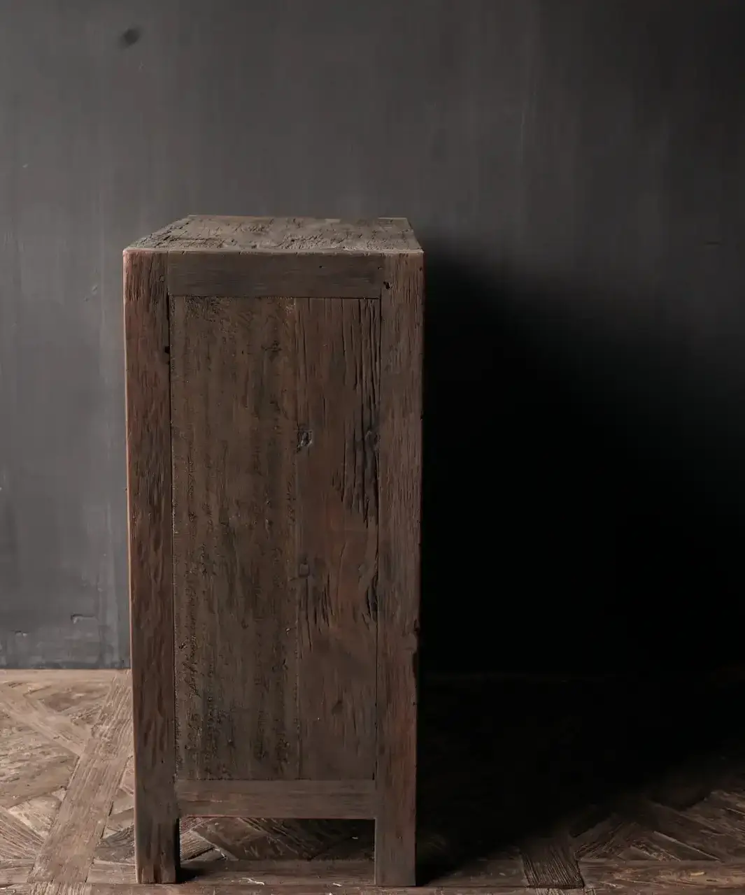 This cabinet is completely made of solid aged wood.