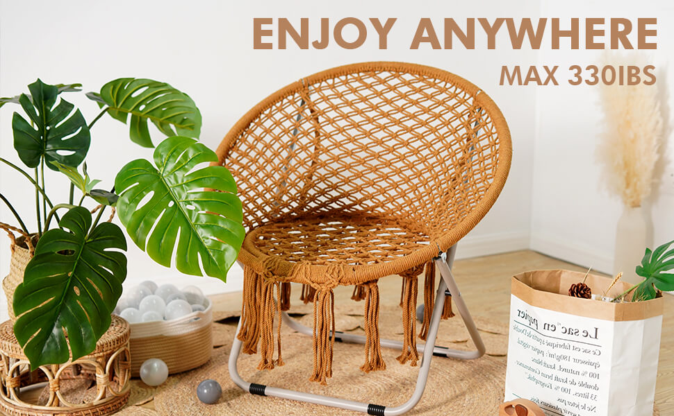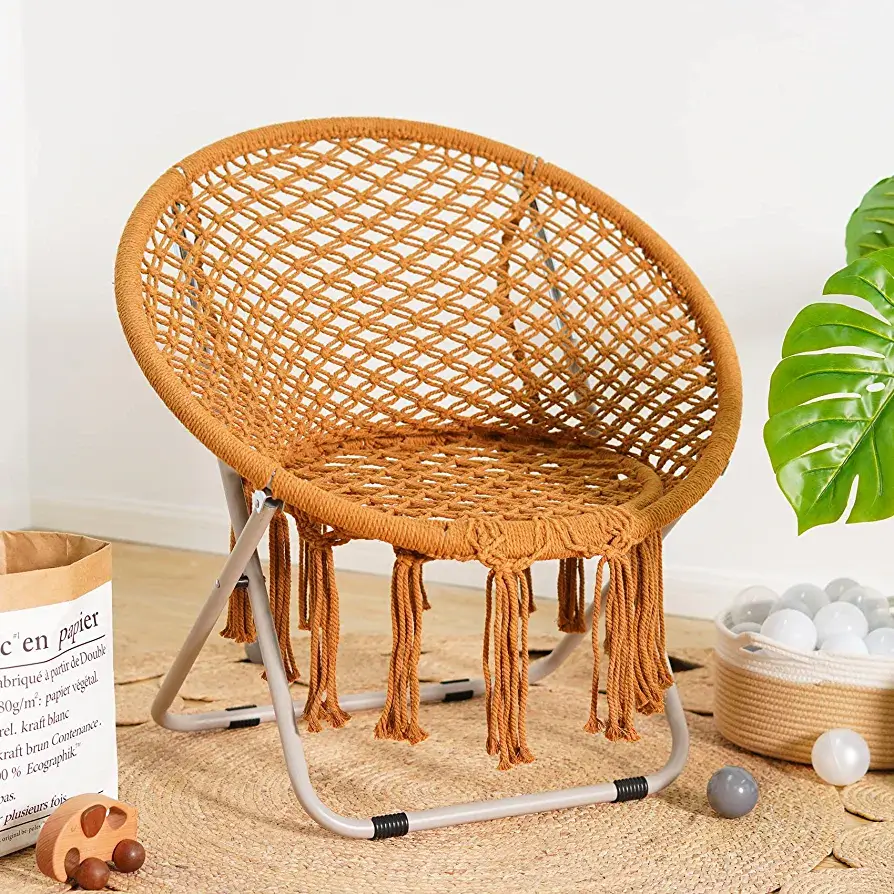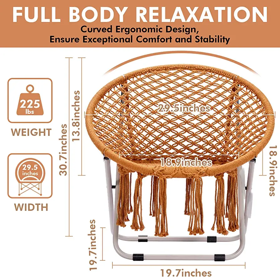 Dreamy and Chic Saucer Chair- Sitting in a comfortable chair is most girls’ childhood dream, now you can get it easily. 100% Hand-made cotton Bohemian moon chair, chic interlacing pattern and elegant draping tassels, plus arched backrest, combined with stylish and practical features, to provide you with beautiful comfortable handmade chair.