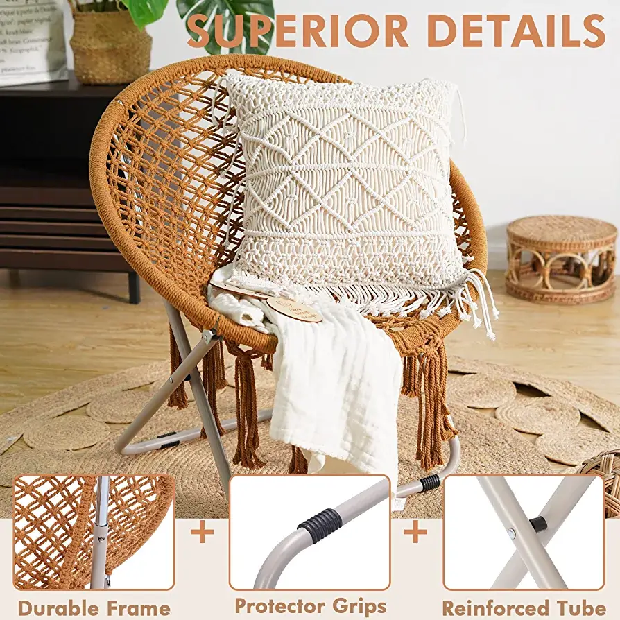 Strong and High-quality Material- Our folding chairs are made of double sturdy rope weave and rust-proof metal pipe. This makes our cozy chair can be used for a long time without rust and has a longer service life.