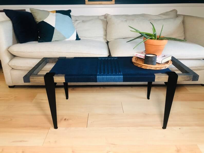 The woven bench is a handmade piece that brings a unique and stylish look to any entryway or living space. Each bench is crafted with care using a weaving technique with cotton cord and natural finish wood that is beautiful, functional and lasts for many years.