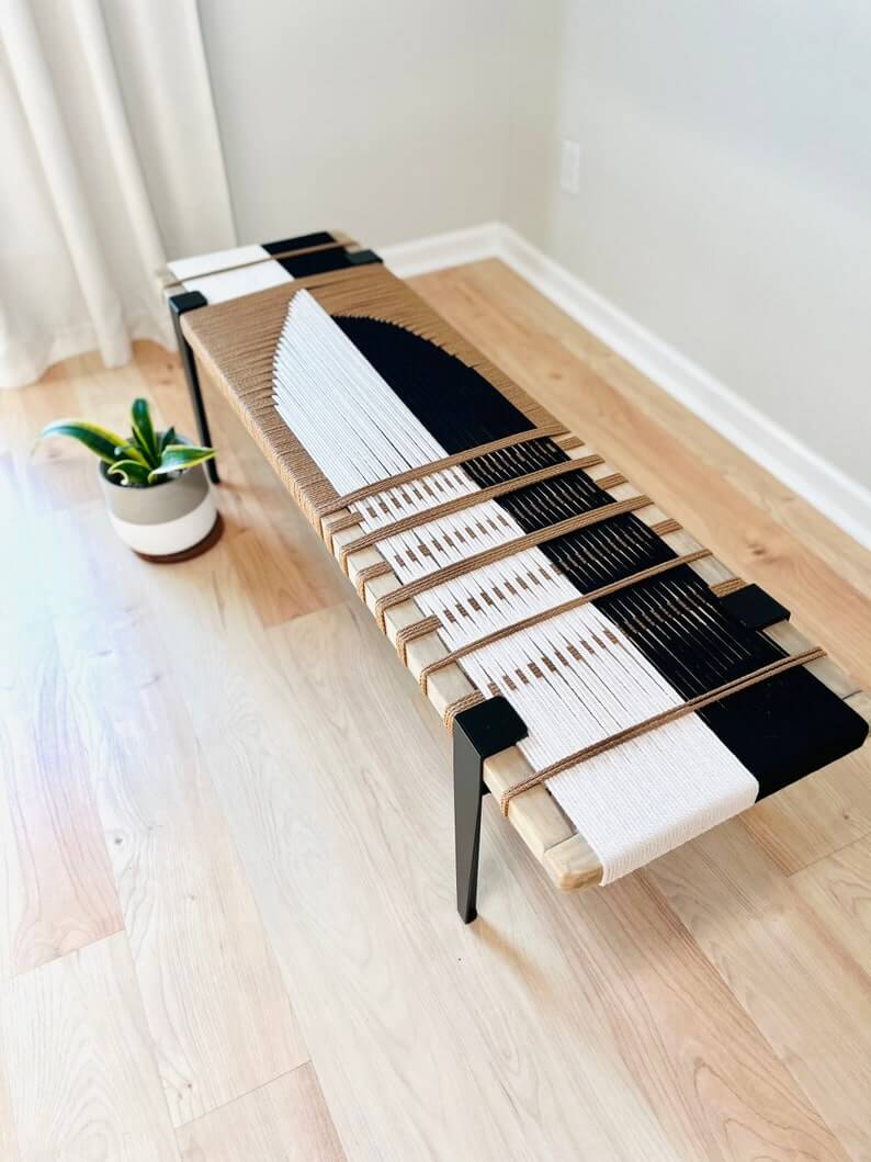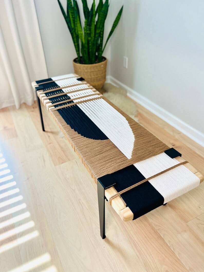 The woven bench is a handmade piece that brings a unique and stylish look to any entryway or living space. Each bench is crafted with care using a weaving technique with cotton cord and natural finish wood that is beautiful, functional and lasts for many years.