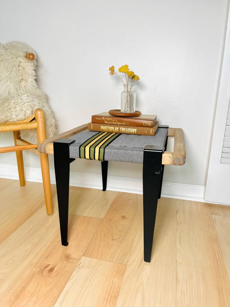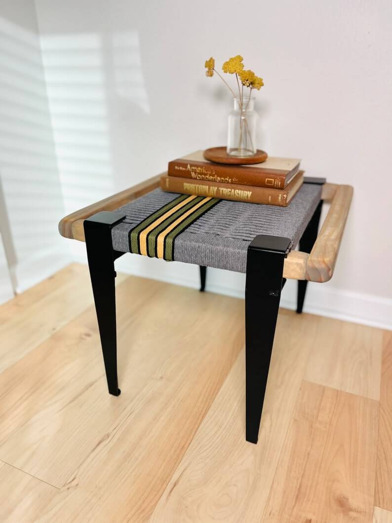 Hand Woven Stool, Boho modern stool, Center Table , End of Bed Bench, Side Bench, Minimalist Bench
