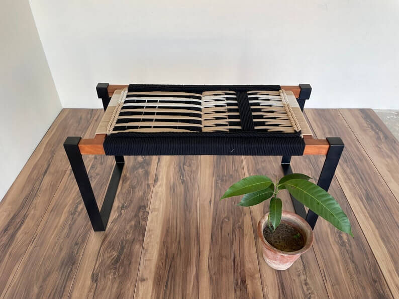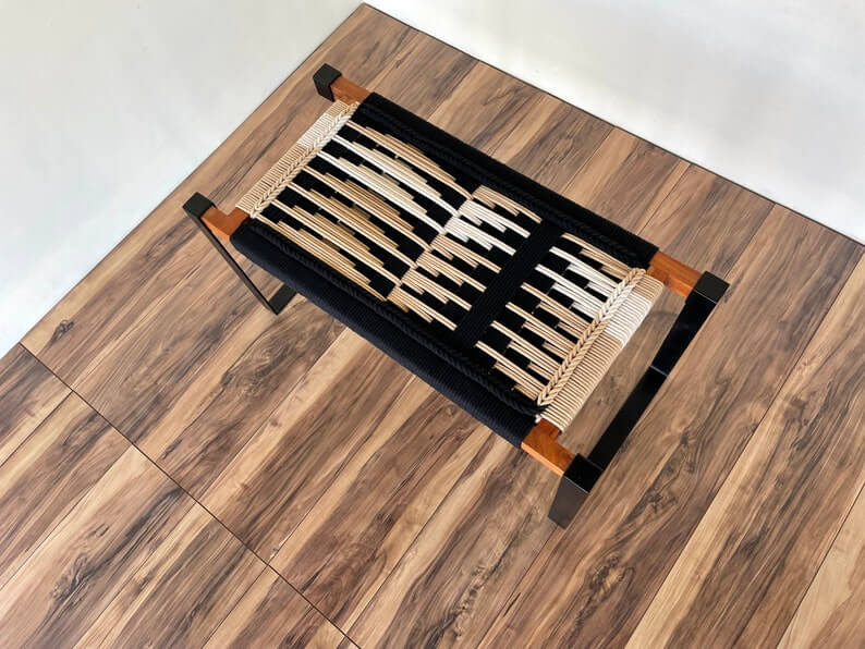 Hand Woven Stool, Boho modern stool, Center Table , End of Bed Bench, Side Bench, Minimalist Bench