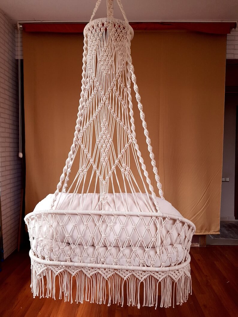 With aesthetically design and export quality material, this macrame hanging bench can create a relaxing atmosphere in your home. Made with premium, this hanging swing bench is strong enough it can bear 350 kg weight. Once installing the hammock bench, you can enjoy plenty of room to swing in the bench with your partner. Comfortable and sturdy, our hanging rope bench gives you and your family the ultimate indoor and outdoor relaxing experience.