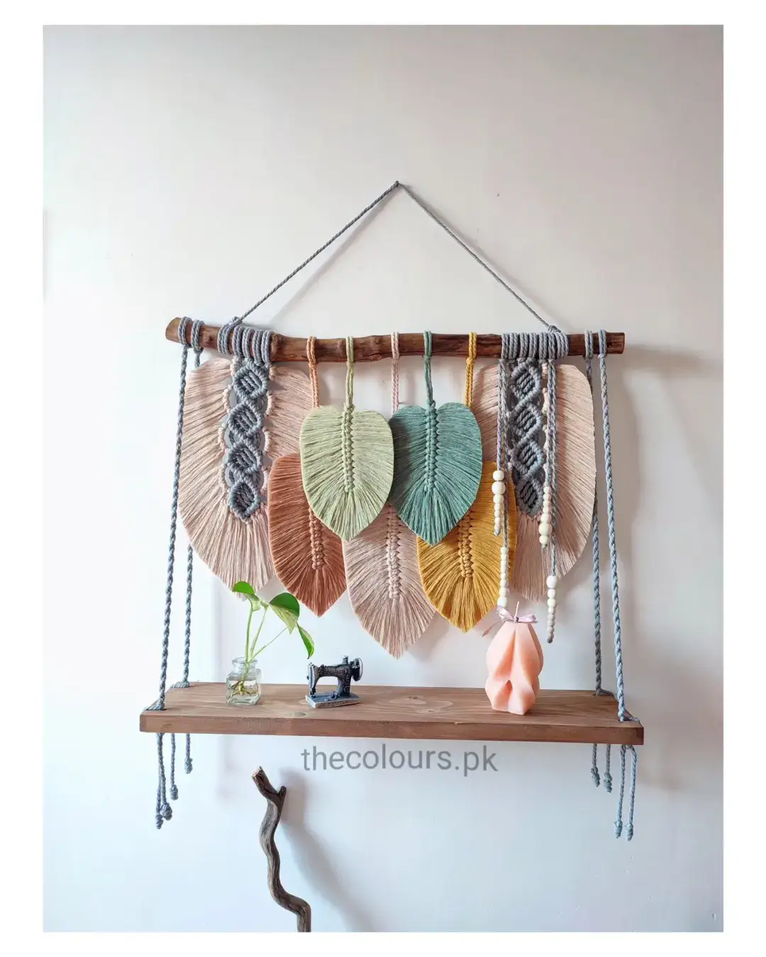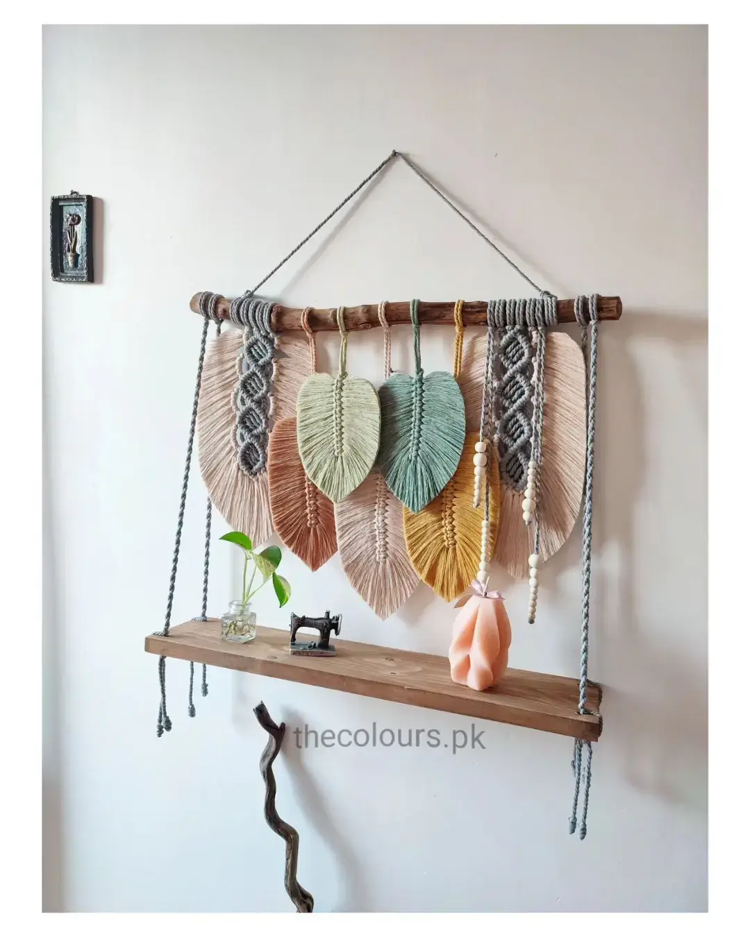 This Macrame Leaves Wall Hanging Shelf is handcrafted/ hand woven with Natural Pure Cotton Cord.