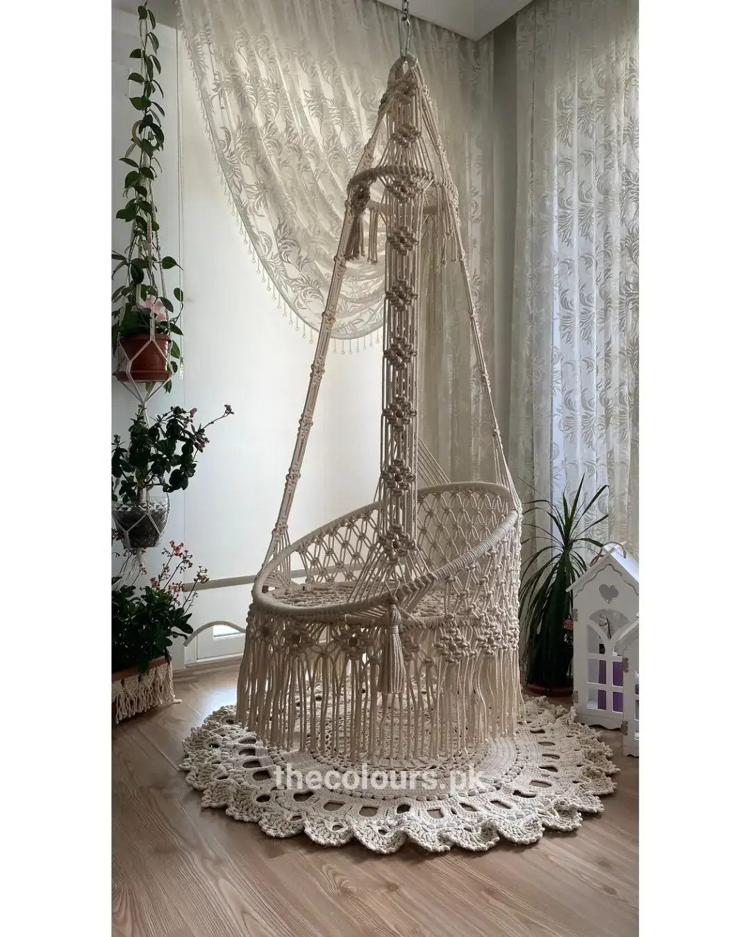 This macrame swing is a stylish and cozy addition to any room’s decor.