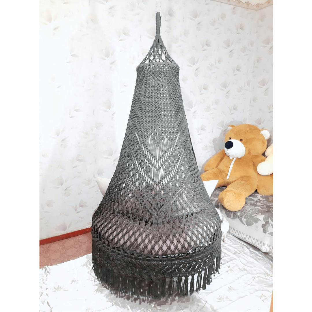 The hanging crochet chair is made in the macrame technique from a hammock 100% cotton macrame cord. This macrame swing will be great addition for your room.