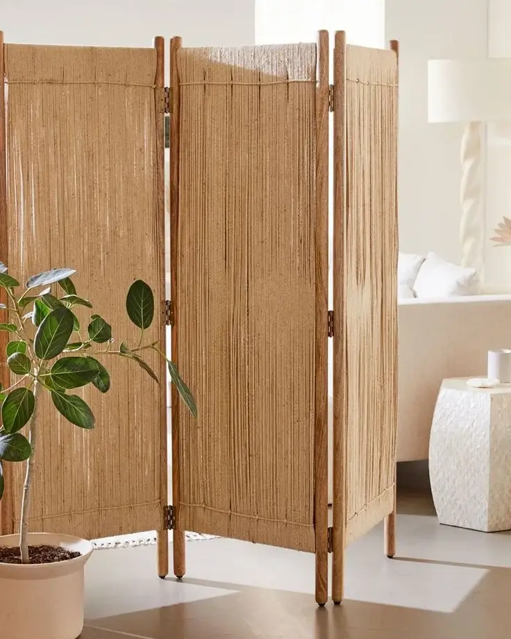 This Hand Woven room divider is the perfect way to break up your space with boho-approved appeal. Tri-panel folds up for easy storage.