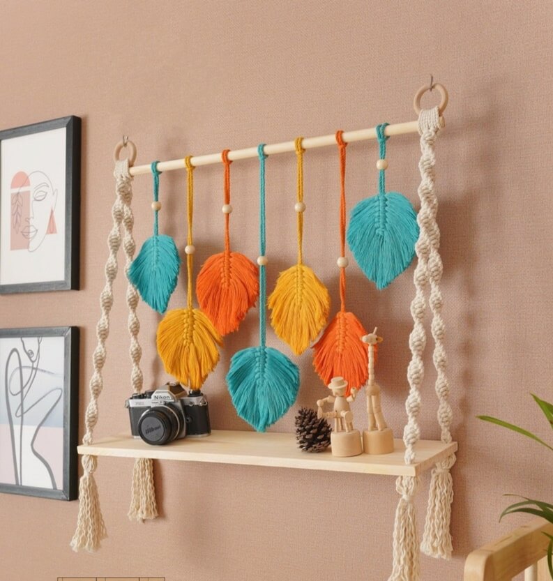 This Handmade Macrame Wall Shelve/ Hanging Shelves is perfect for your Modern Home Decor, Decorative Shelves, Farmhouse Shelf and Living Room Shelves in a bohemian vibe. This could be a perfect idea for a Boho Birthday Gift, and Unique Gift.