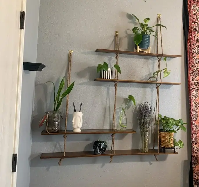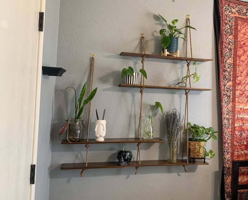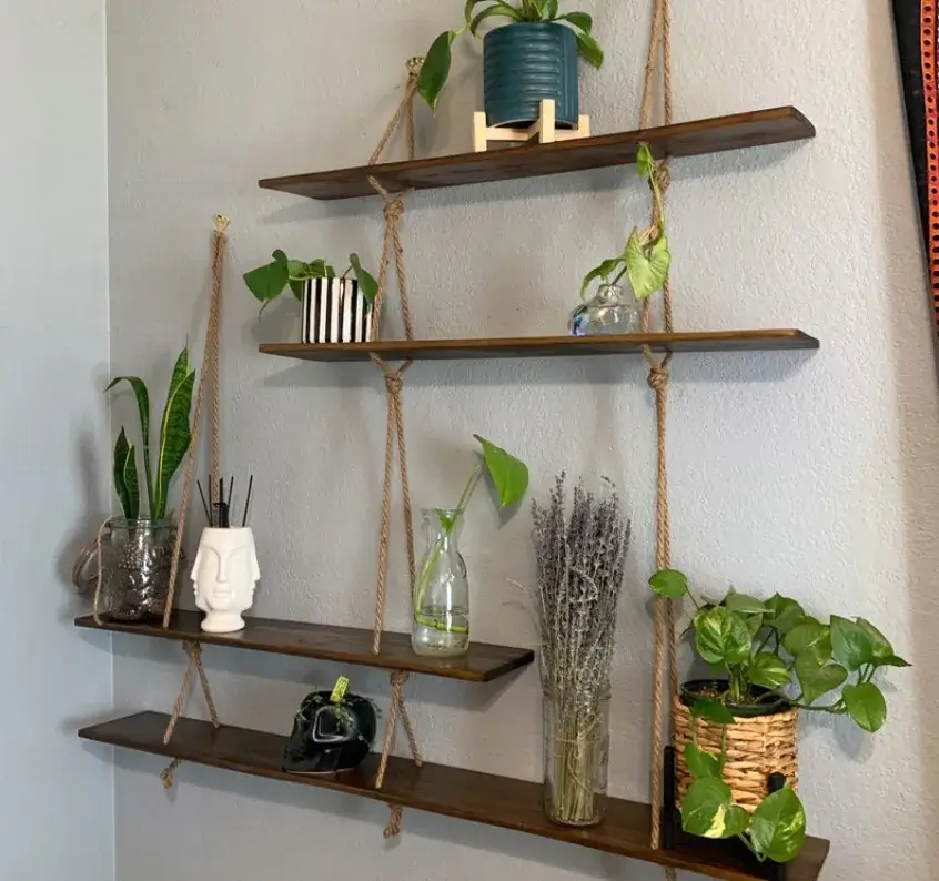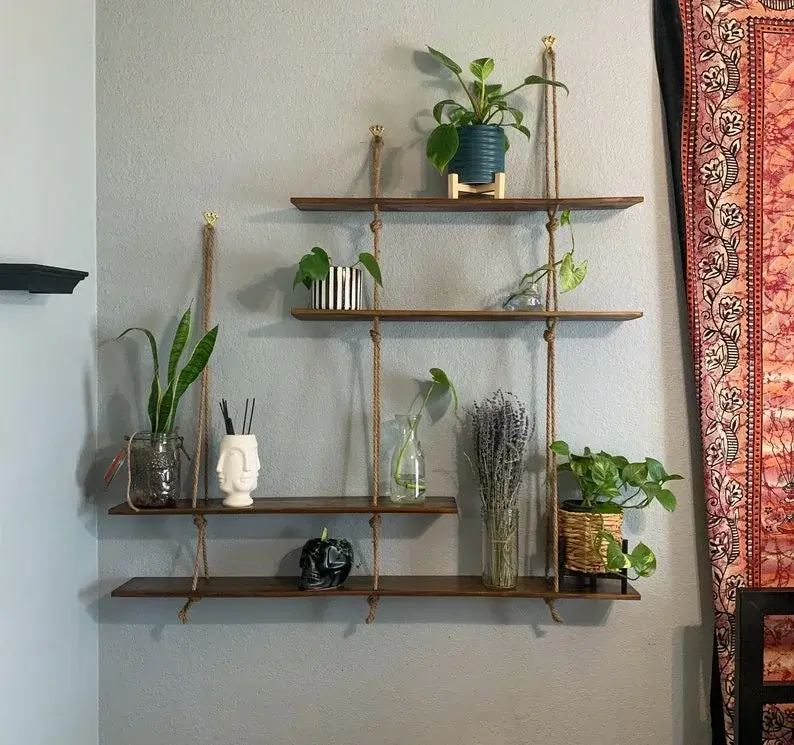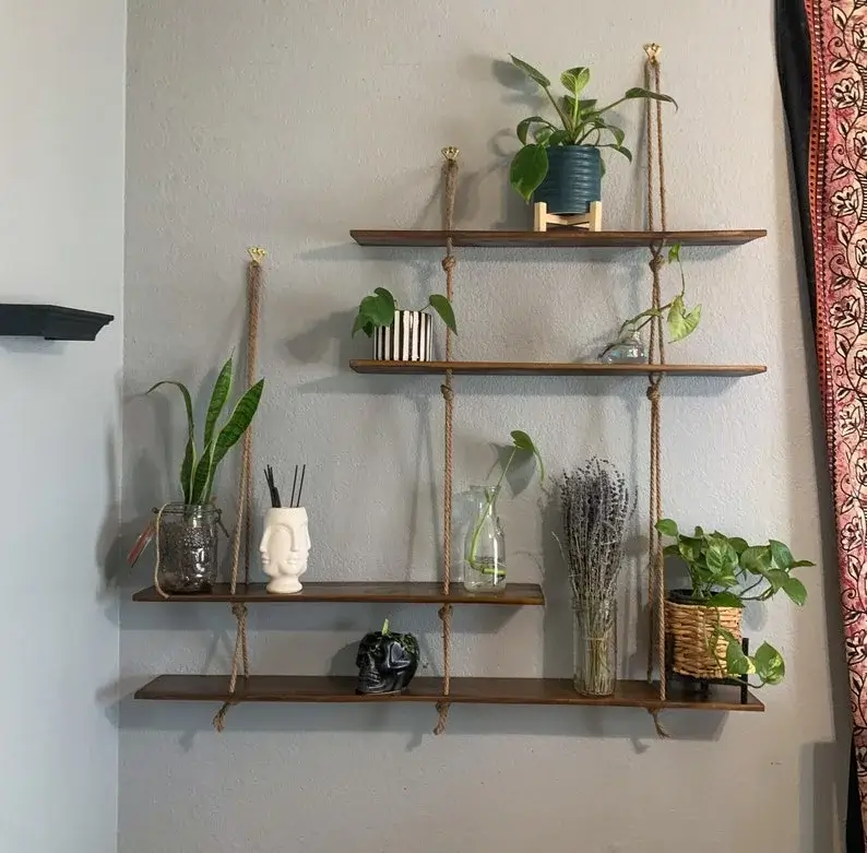 Multi-functional, handmade with 100% organic & sustainable materials. Perfect for keepsakes, plants, crystal display, Window Plant Shelf, or beautifully display your books with this hanging bookshelf. This unique decor is the perfect plant lover gift for your loved ones, as well as anyone that wants to aesthetically display // declutter & organize // enhance a space with this boho, rustic, minimalist aesthetic!